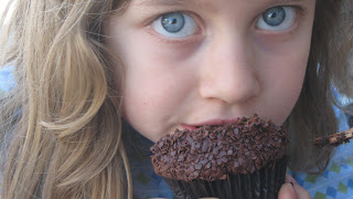 Now I’ve read about how cupcake bakeries are all the rage in LA, and the whole thing seems a little too cute for me, but as my walking partner and I passed this especially famous cupcakery, I thought, Come on, let’s be cute and trendy just this once for adventure’s sake. And my little walking partner was totally game.
