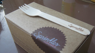 She picked the double chocolate, and I went with the recommended red velvet. She definitely won, because I forgot that I hate red velvet cupcakes. But this one was pretty good anyway.
