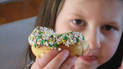 Now we eat doughnuts every so often- we’ve even made them, but the doughnuts we find around here aren’t the sprinkly and colored kind who speak from the pages of Arnie. Now why talking doughnuts would induce us to such hunger, I’m not sure, but it overwhelms the whole family. And so we decided to take a little field trip down the hill last Saturday morning, to Dunkin Donuts.