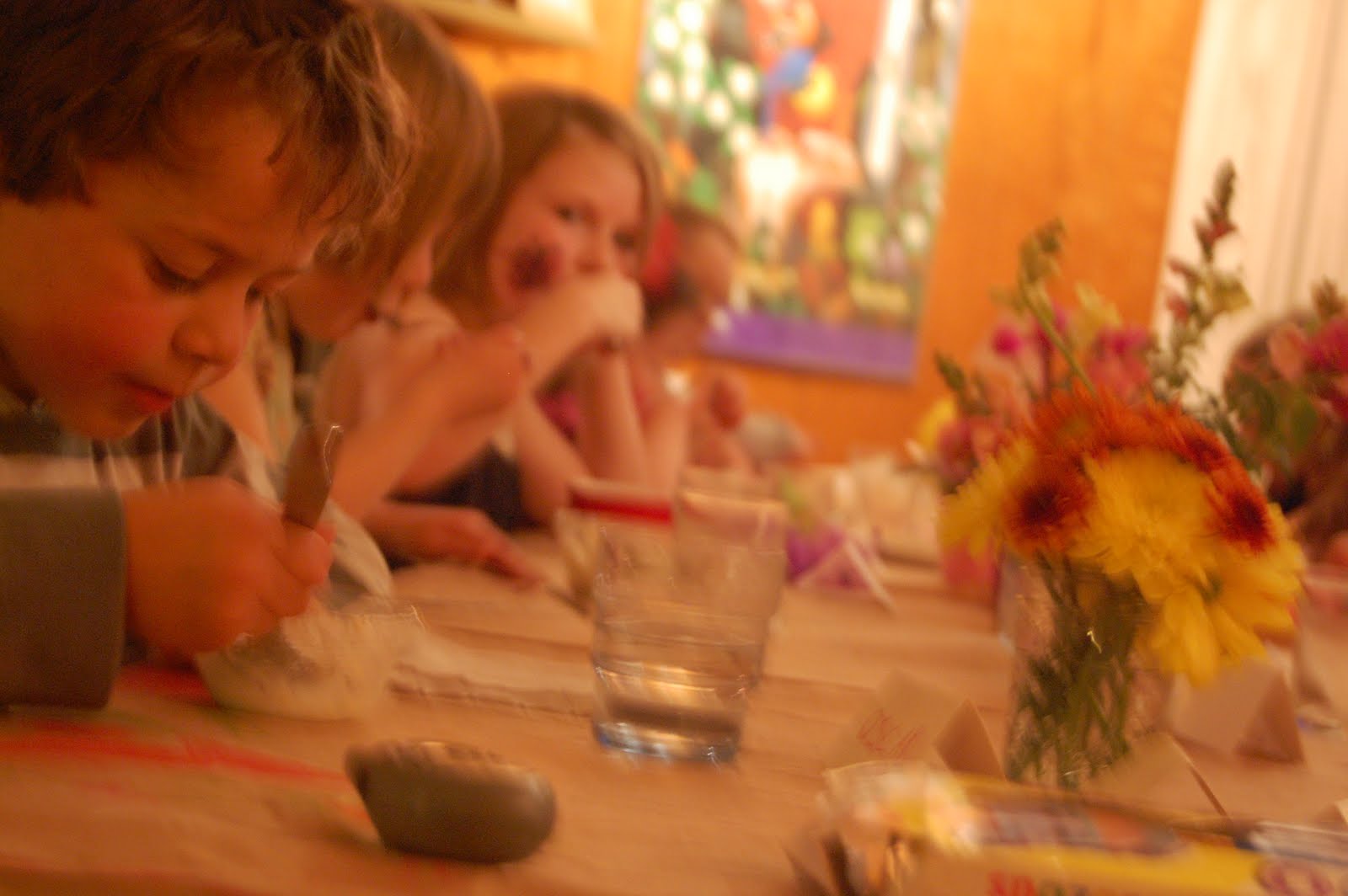 This is how it worked. Rosie, Sadie and my sister Maia all got to invite a few friends. I cook dinner. Fancy like the grownups do it. Simple, right?