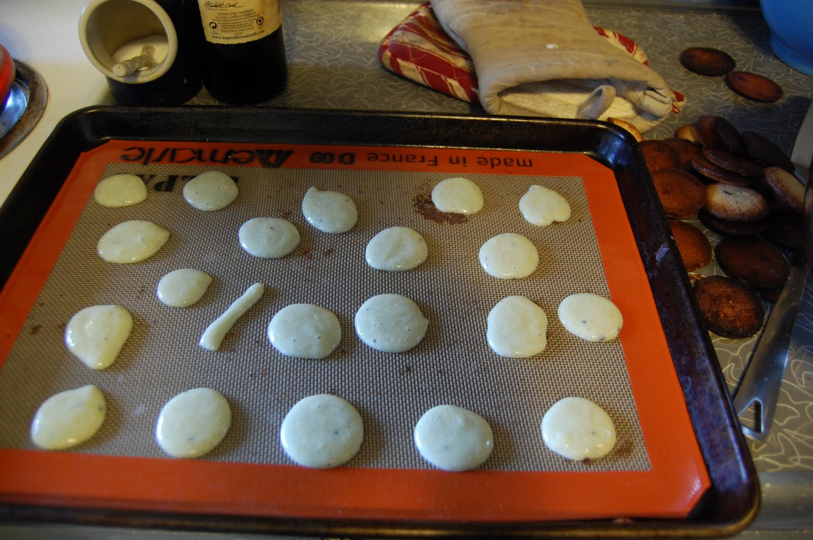 Whatever air was left in that batter, I somehow lost in the massacre that I committed with the pastry bag. No rise. No feet.