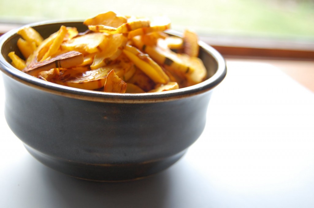 The delicata has edible skin. You can, of course, stuff it with lovely things, but I’m going to suggest that you just make delicata chips.