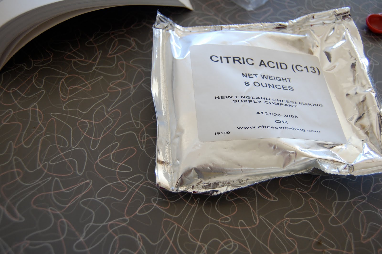 1 1/2 teaspoons citric acid dissolved in 1/2 cup non chlorinated cool water (use 2 teaspoons if you are using raw milk)