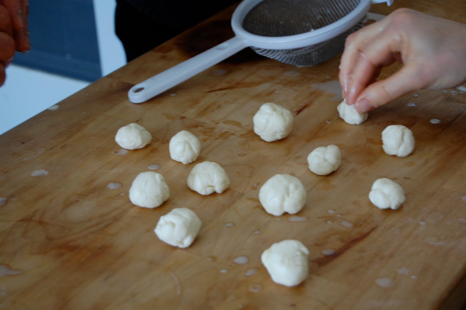 At this point you can roll it into little balls and eat warm, or you can add fresh herbs. If you are going to store it, submerge it in ice water for 30 minutes to bring the temperature down. After that, you can take it out of the water and place it in a covered container in the refrigerator. It will keep for a week.
