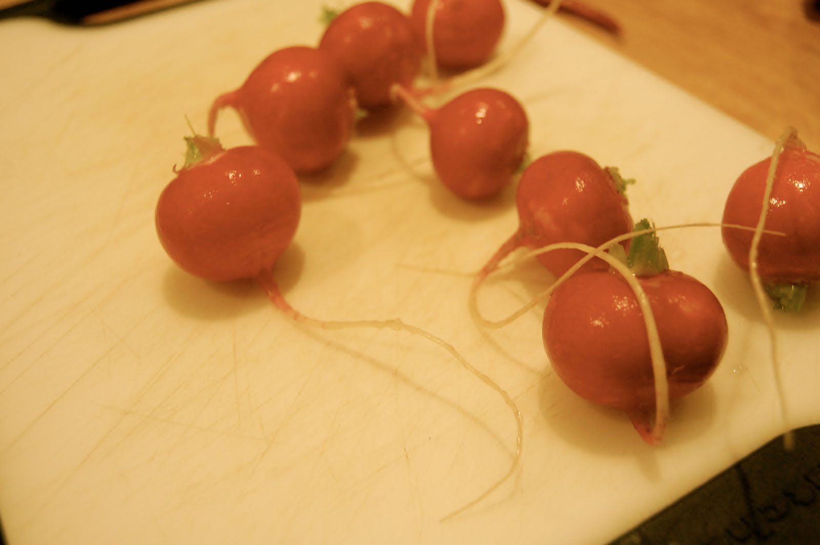 1 head treviso, separated into individual leaves (treviso is a new vegetable to me- a cross between endive and raddichio. If you cannot find it, you can do two heads of endive, or just skip it altogether.