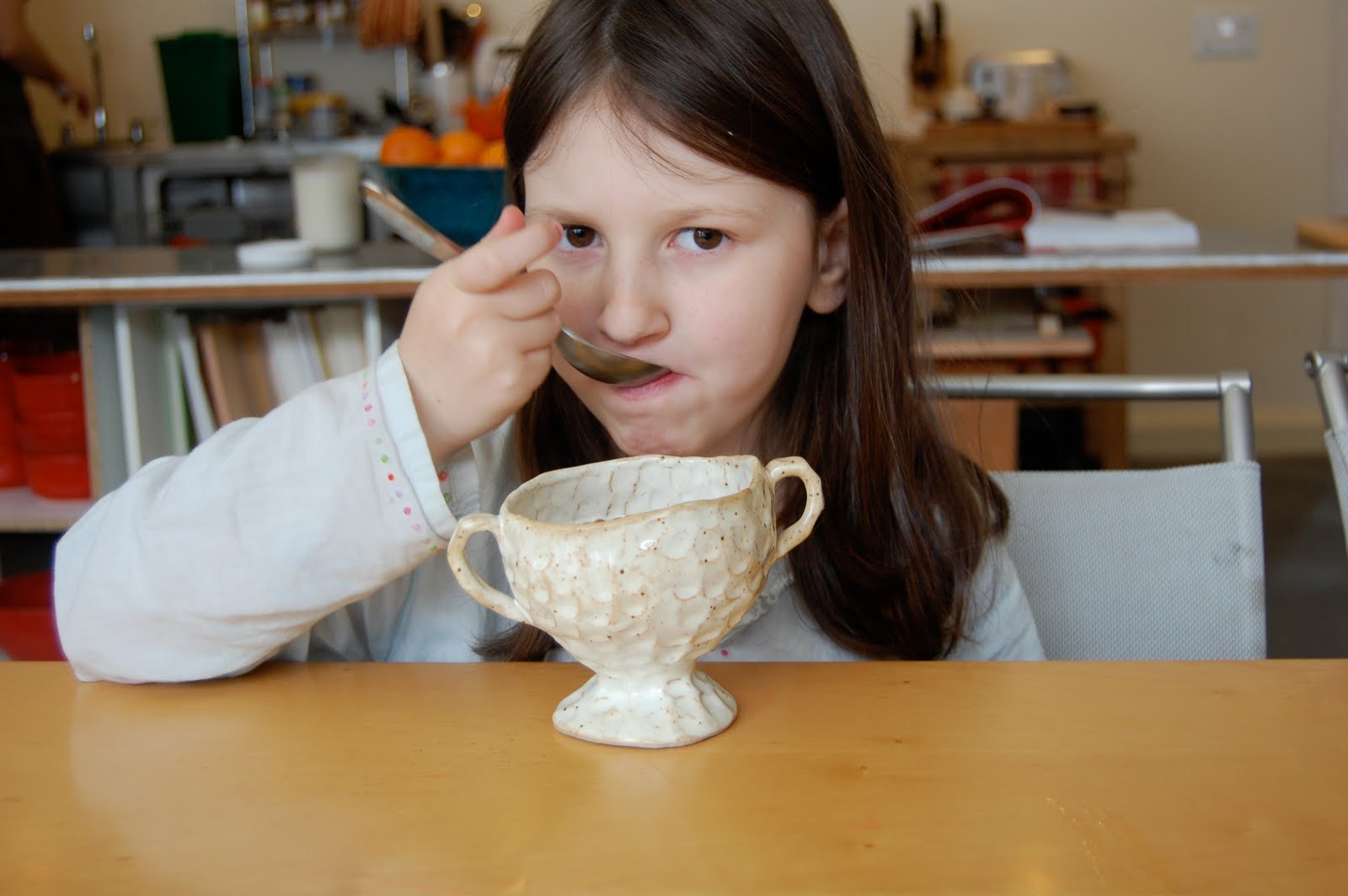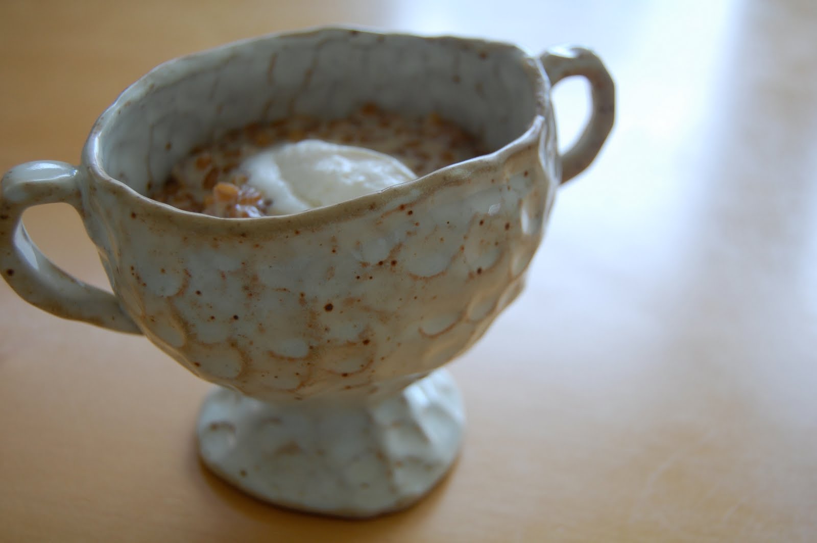 So today, in celebration of Sadie’s renewed wheat affair, I made creamy wheat berries with honey for breakfast. And in celebration of Sadie’s capacity for love, sometimes not quite demonstrated, I gave it to her in the loving cup.