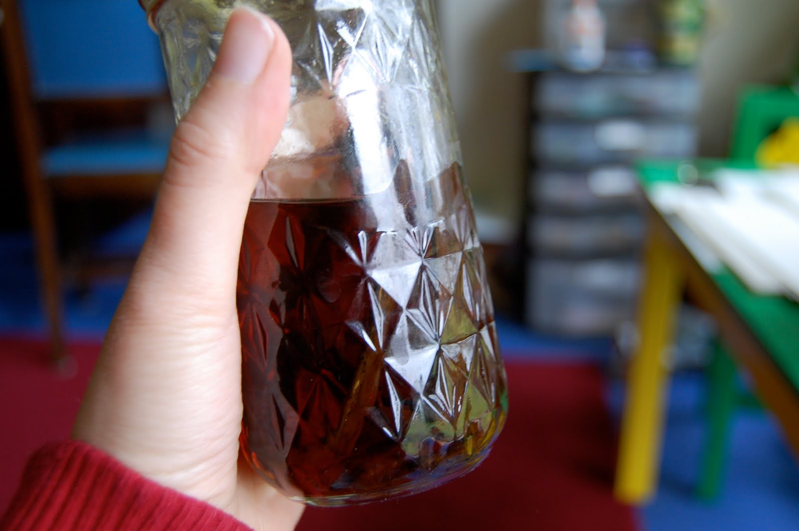 So here is how it works. Fill a jar or little glass bottle with vodka. It can be the cheap stuff. Put it on your shelf, preferably not in direct sun. As you go through your vanilla bean stash, rinse the spent bean after use and throw it in the jar of vodka. Keep shoving them in there. Let it sit around for awhile. When the liquid is amber colored and tastes like vanilla, it’s ready to use.