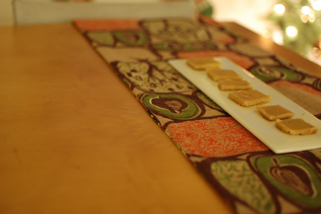 A few minutes before the shortbread is done, melt the butter in a small saucepan. Whisk in the other topping ingredients until smooth. Bring to a boil, and then simmer while stirring for 30 seconds. Remove the shortbread from the oven and pour the topping over it, tilting the pan to get an even coverage. Cool the pan on a rack for at least 2 hours, then cut into 64 squares in the pan.