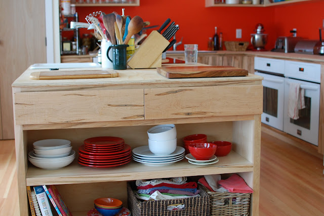 Everything is still shifting around. The drying rack isn’t mounted to the wall over the sink yet, the counters are temporarily (yeah right!) made of plywood, and there are no pulls on the drawers.
