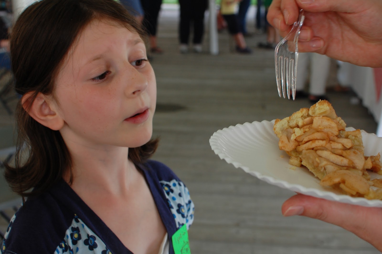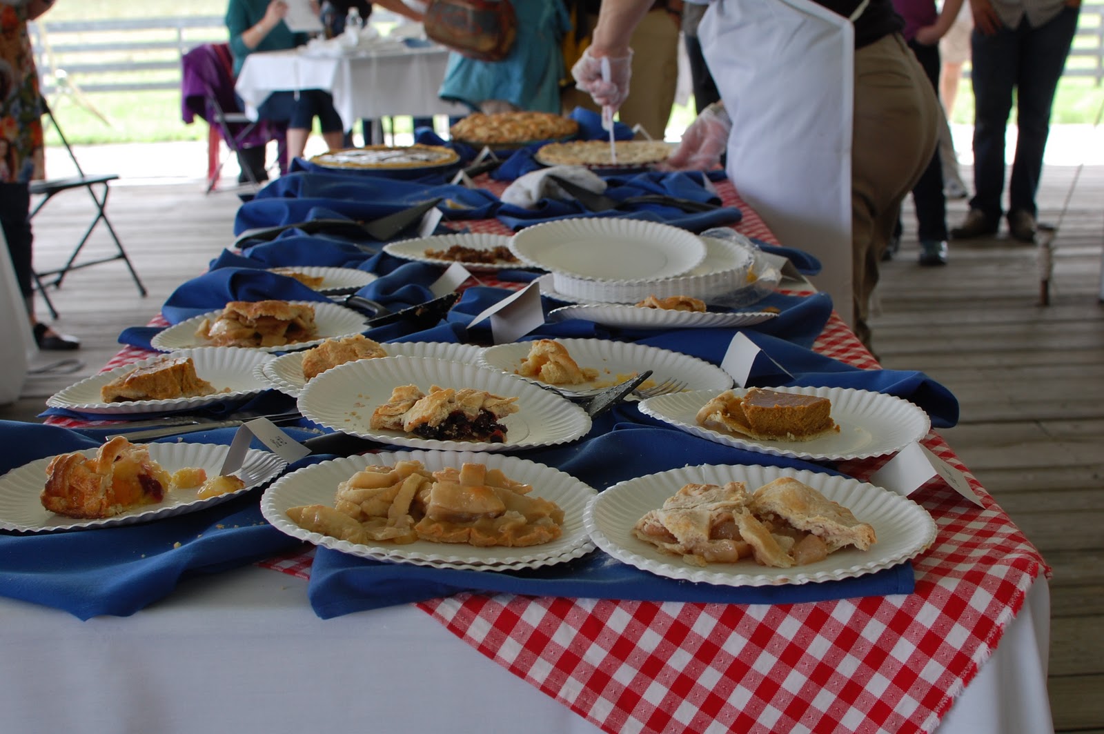 Each pie went to the judges first, and then slices went out for 2 bucks a pop. Joey bought every kind he could get to, and the girls sat like baby birds in the nest, waiting for bites.